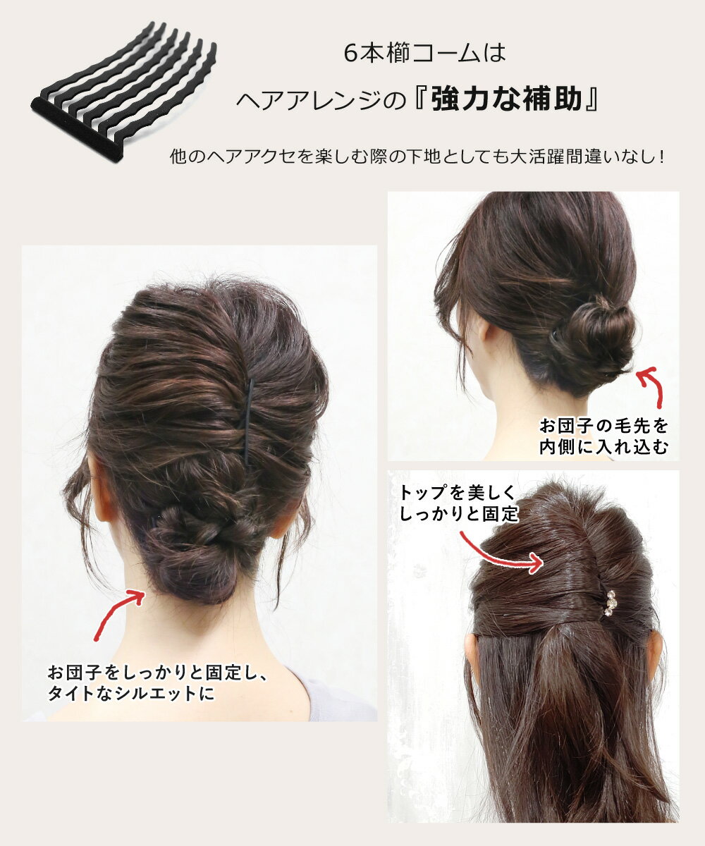 追跡可能メール便対応 【コーム】【インナーヘアアクセ】コーム 6本櫛 -Pro-[就活 夜会巻き お団子 盛り 結婚式 パーティ ヘアアクセサリー ブラック 黒 シンプル 使い方 簡単 まとめ髪 ヘアアレンジ 動画]