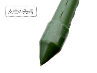 商品のお届けについて 送料について ご注文単位は1本からです。 こちらの商品の同梱可能本数(1箱に入る個数)は、100本まで同梱可能です。 ※小梱包でのお届けはできません。 ・送料についてはこちら果樹、花木栽培に欠かせない! イボ支柱(止めゴム付)90cm なぜ支柱がいるの? 支柱を立てたる理由は、 風などの影響で根が踊らないようにして、 活着が悪くならないようにするためです。 風などで苗木が揺れると、地中に植わっている根にもその揺れ(振動)が伝わります。そうすると、根が地中で傷んだり、その揺れがストレスになって、苗木が弱ってしまうことがあります。 特に小さい若木の頃は、きちんと支柱を添えてあげることが大切なのです。 この「イボ支柱」は、丈夫で強度に優れた鋼管(スチールパイプ)に、樹脂コーティングしているので、錆びにくく、さらに耐久性に富んだ支柱です。また、表面にイボがついているので支柱を止めたゴムがズレにくく、野菜・果樹の誘引がしやすくなっています。 先端は土に挿しやすいように加工されおり、とても便利になっています。 イボ支柱(止めゴム付 ) の特徴 支柱の高さ 900mm ( 90cm ) 支柱の太さ 16mm 適応植物 1~2年生果樹、かんきつ苗、花木、庭木など