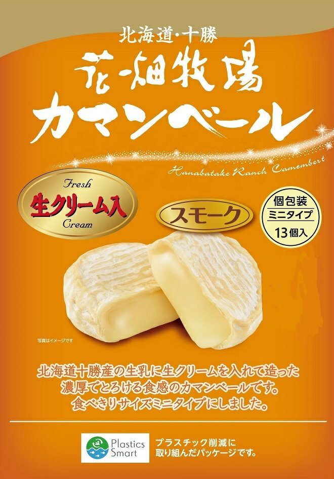 ■カマンベールスモーク ミニタイプ 【種類別】ナチュラルチーズ 【内容量】1袋(13個入り/299g) 【賞味期限】製造日より365日 【保存方法】-18℃以下で冷凍保存 【原材料名】生乳(北海道産)、クリーム(乳成分を含む)、食塩 / くん液、カラメル色素 ※商品の改訂などにより、商品パッケージの記載内容と異なる場合があります。 【製造者】株式会社 花畑牧場 北海道河西郡中札内村元札内東4線311‐6■カマンベールスモーク ミニタイプ 13個入り 北海道・十勝産の生乳を100%使用して造った手造りのカマンベールです。スモーク味タイプ。ミニサイズの個包装タイプなので、お手軽にお召し上がり頂けます。なめらかでコクのある味わいのカマンベールです。