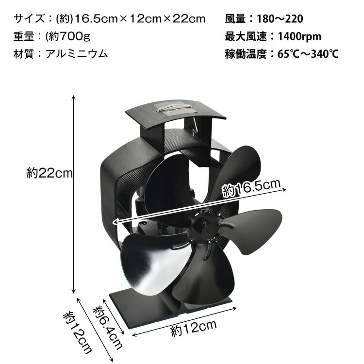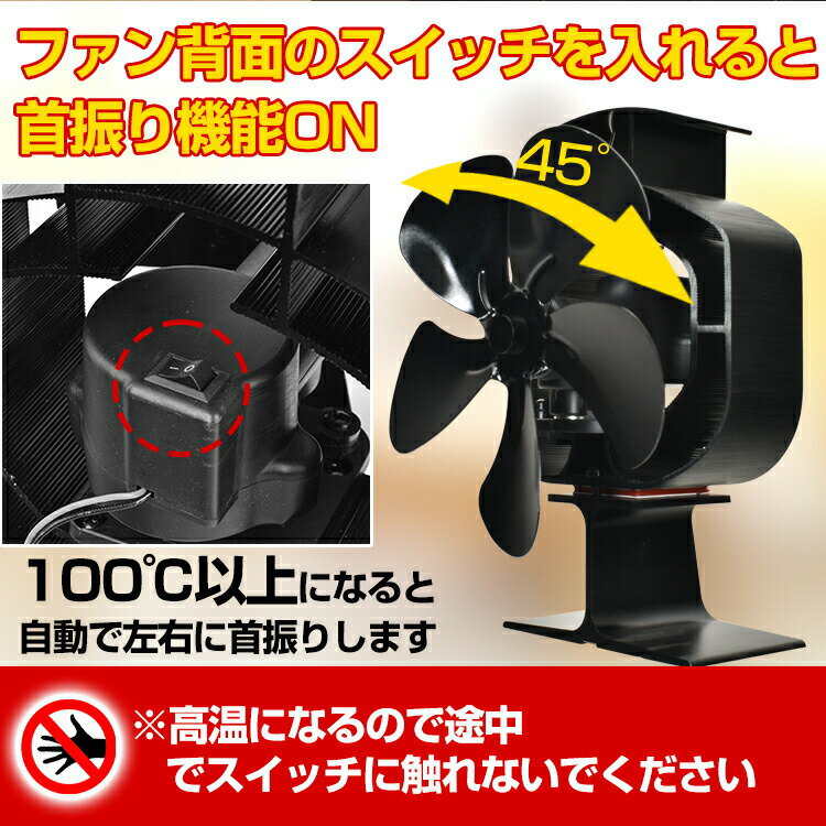 ストーブファン 火力ファン エコファン 5枚羽 首振りタイプ 電源不要 静音 340℃まで 寒い日 寒さ対策 キャンプ 暖炉用品 od580