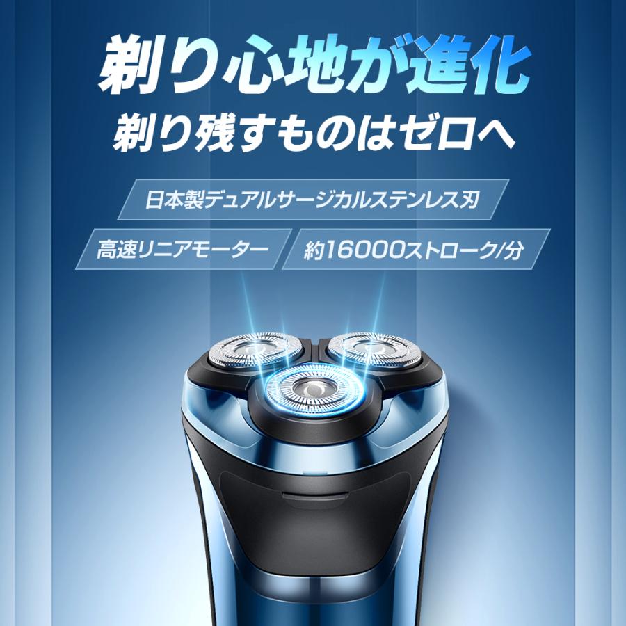 Belando 電動シェーバー 商品仕様 型番:FK-373 カラー:ブラック、シルバー、ネイビー 商品サイズ:178x85x78mm 重さ:約168g 給電方式:USB充電式(※一回のフル充電で最大100日間使用可能) 駆動方式:回転式 刃の枚数:3枚刃 洗浄方式:丸ごと水洗い対応(防水レベル:IPX7) 充電時間:フル充電まで90分※急速充電で5分間で1回シェービングができます 商品特徴 【進化した剃り心地と深剃り性能】 ・ 日本製デュアルサージカルステンレス刃を搭載して、 毎分約16,000ストロークの高速リニアモーターでパワフルにヒゲをカット。 ・二重リング密着刃ネットが高密度にヒゲを捉え、肌に優しく、 シェーバー メンズ として最高の深剃り体験を実現。 【360°回転式フローティングヘッドで完璧フィット】】 ・顔の輪郭に合わせて自由に動く360-Dフレックスヘッドが、顎や首などの凹凸にも密着する。 ・剃り残しをゼロへ導く最新構造で、 電気シェーバー メンズ 部門での高評価も納得の使い心地。朝の忙しい時間にも、時短でスムーズに 髭剃りシェーバー が完了します。 【IPX7防水設計&ウェット・ドライ両用】 ・完全防水(IPX7規格)に対応しており、シャワー中でも使える安心な電動シェーバー 。水洗いもワンタッチオープンヘッドで簡単。 【LCDディスプレイ搭載&スマートロック機能】 ・高機能LCD画面がバッテリー残量、使用時間、洗浄リマインダーを一目で表示します。 ・誤作動を防ぐスマートロック機能を搭載し、バッグ内での無駄な電力消費も防止。機能美と実用性を兼ね備えた電動シェーバーです。 保証期間 お買い上げ日から3ヶ月。 初期不良、自然故障等、通常使用にかける不具合には保証対応させていただきます。 関連キーワード 電気シェーバー メンズシェーバー 髭剃り シェーバー ひげそり 電動 電気シェーバー 回転式 3枚刃 回転式 トリマー搭載 IPX7防水 LEDディスプレイー USB充電式 お風呂剃り対応 旅行 持ち運び便利 男性 プレゼント 電気 電動 髭剃り 男性用 メンズ お風呂剃り 丸洗い 防水 充電式 深剃り ヒゲ 髭 海外 持ち運び 海外対応 ギフト 送料無料 メーカー希望小売価格はメーカーサイトに基づいて掲載しています メーカー希望小売価格はメーカーサイトに基づいて掲載しています メーカー希望小売価格はメーカーサイトに基づいて掲載しています