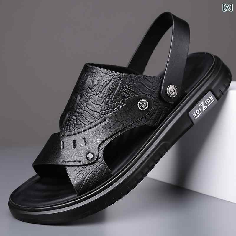 サンダル メンズ 夏 牛革 レザー ソフトソール ビーチサンダル 滑りにくい 2WAY スリッパ 通気性 防水 クッション性 アウトドア カジュアル ブラック ブラウン