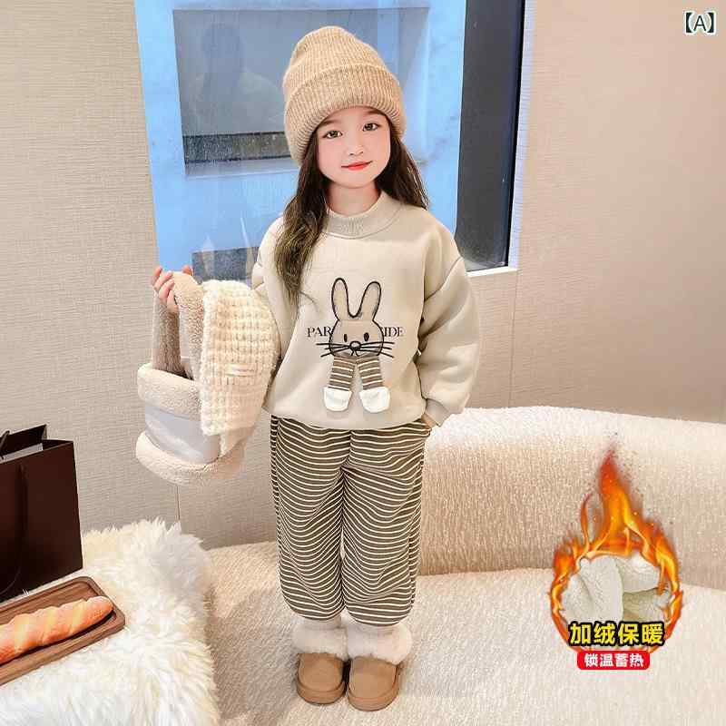 女の子 キッズ 秋冬 セットアップ 上下セット スポーツウェア 普段使い 綿 トレーナー スウェット 裏起毛 厚手 長袖 長ズボン おしゃれ カジュアル