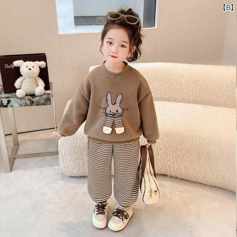 ・カテゴリ: キッズセットアップ・性別: 女の子・対象年齢: 3〜8歳・対象身長: 90cm、100cm、110cm、120cm、130cm、140cm・対象季節: 冬、秋・スタイル: 韓国風・セットアップ種類: パンツセット・セットアップ点数: 2点セット・袖丈: 長袖・パンツ丈: ロング丈・主な素材: 綿85%・生地加工: 柔らか加工・生地厚さ: 厚手・柄: ストライプ、キャラクター・開閉タイプ: プルオーバー・安全規格: Bタイプ・カラー展開: カーキ、コーヒー