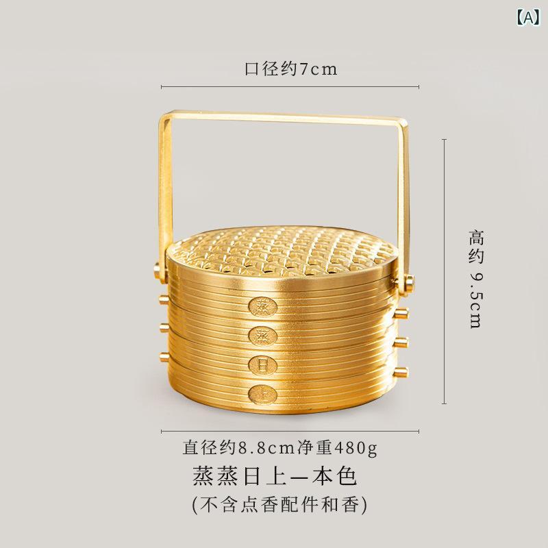 香炉 純銅製 真鍮製 渦巻き線香炉 沈香 白檀用 家庭用 室内 大型 蒸し籠型 吉祥柄 電気メッキ加工 おしゃれ お香立て 仏具 瞑想 リラックス 重厚感 アンティーク調