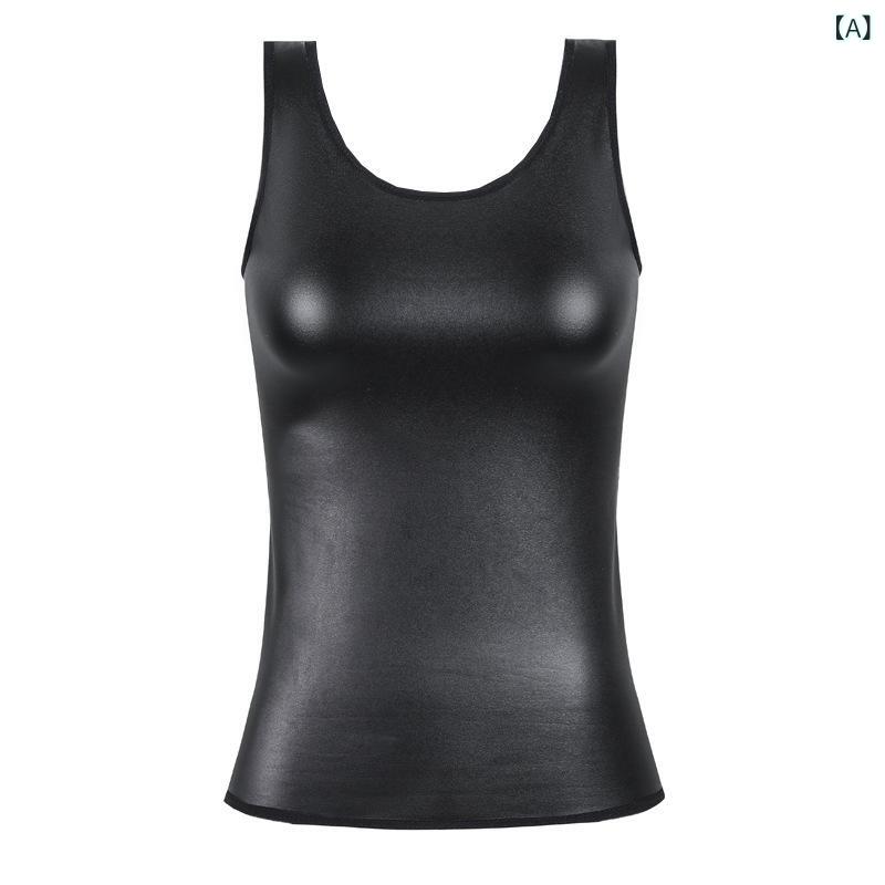 補正下着 レディース 女性用 PU素材 フェイクレザー タンクトップ型 ボディスーツ 伸縮性 ストレッチ 薄手 シームレス 腹部引き締め ウエストシェイプ バストアップ ヨガ フィットネス インナー ブラック 通年