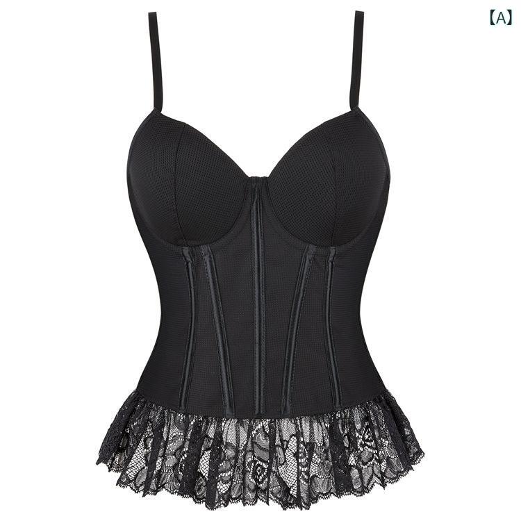 シェイプウェア レディース カップ付き ダブルストラップ キャミソール メッシュ レースフリル セクシー ボディメイク バストアップ 補正インナー ホック付き ポリエステル ブラック