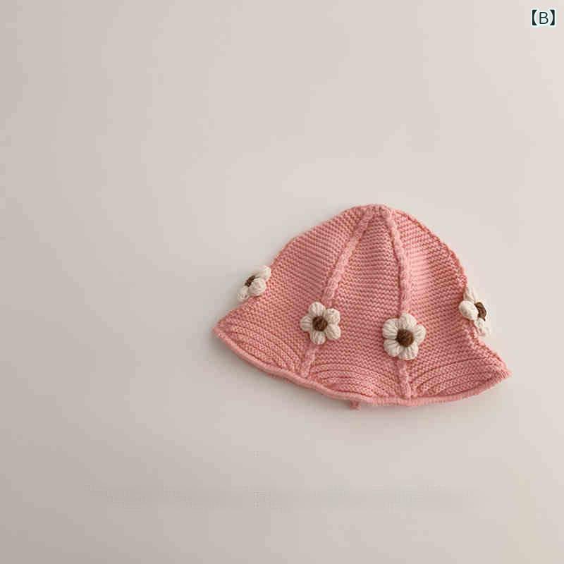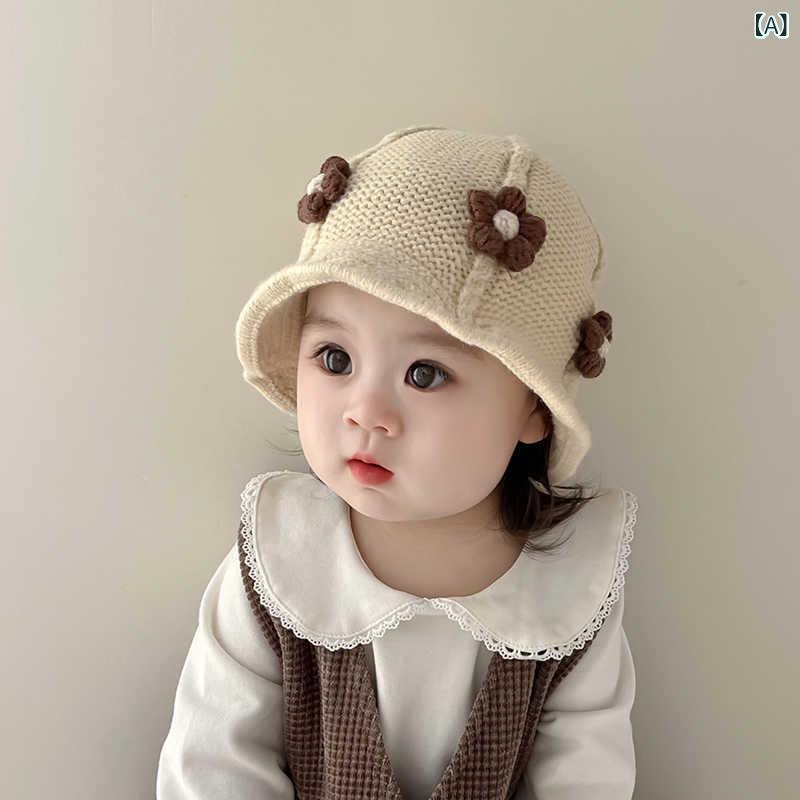 ニット帽 ベビー 女の子 冬 韓国風 手編み 花柄 アクリル 保温 防風 広つば バケットハット風 おしゃれ かわいい 普段使い お出かけ 幼児 乳児 スウィート ナチュラル系 プリンセス風