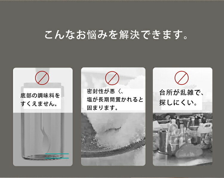 【伸縮可能なスプーン!死角がない】調味料入れ スプーン付き ベージュ グラス 調味料ポット 2個セット 塩入れ 砂糖入れ 使いやすい おしゃれ 収納 保存 湿気防止 調味料容器 密閉容器 調節可能スプーン付き スパイス入れ