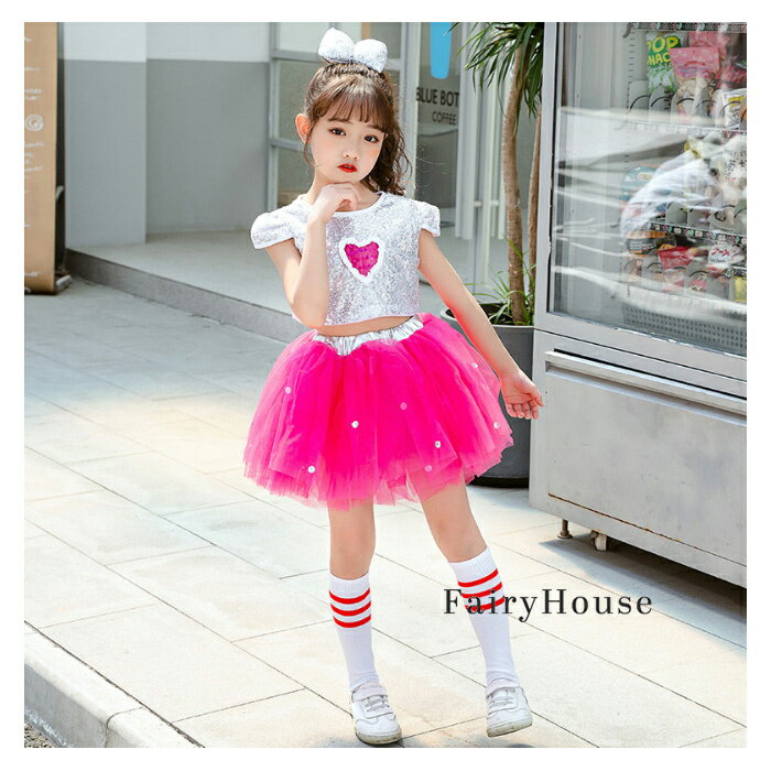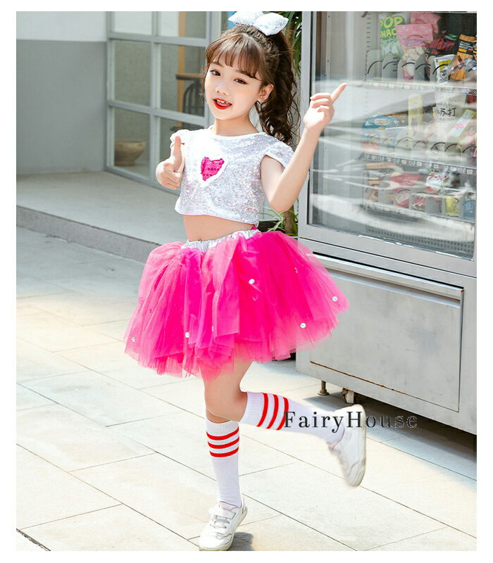 ダンス衣装 女の子 スパンコール チアダンス ガールズ 舞台 団体服 演出服 キラキラ トップス チュチュスカート キッズダンス 上下セット 110 120 130 140 150 160 ステージ衣装 発表会 ダンス衣装 派手 舞台 応援団 クラス活動 文化祭 学園祭 余興 発表会 忘年会 公演服