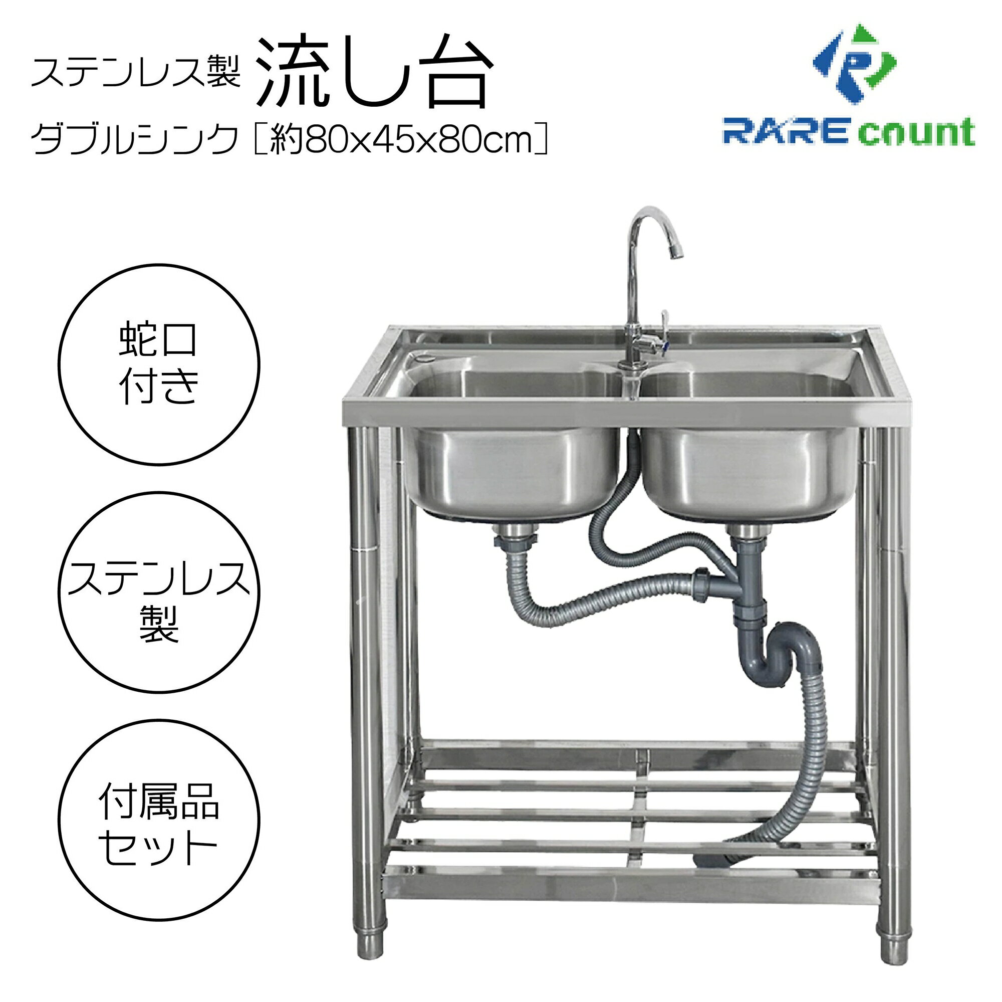 ステンレス 簡易 流し台 約幅80×奥行45×高さ80cm シンク RC-W80 送料無料 ※北海道、沖縄県、離島を除く 【ロジ発送】