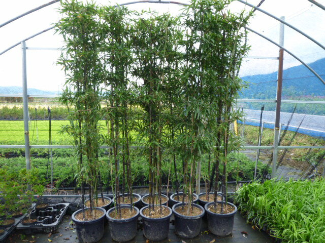 【送料無料】【2鉢セット】 クロチク 高さ1.8m前後 30cm鉢 くろちく くろたけ 黒竹 クロタケ クロチク 3本立ち〜高級竹 1.8m(鉢含む) 苗 植木 苗木 庭 生垣 ※当店(楽天市場 花と緑)は北海道、沖縄県への発送は行っていません、間違えてご注文された場合はお客様都合でのキャンセルで処理させていただきます、予めご了承願います。【お届けについて】ご指定が無い場合はご注文を頂きましてから、通常1〜3営業日での発送となります。発送後、お届けまでの日数は下記をご確認ください。九州・中国・関西・四国・中部 発送日+1日北陸・関東・信越・東 北 発送日+2日(大型商品、大量注文は+1日)。 ワビサビを楽しむ人気の竹 黒くツヤのある竹はとても魅力的で、生垣や庭園竹として人気の品種です。 おしゃれで落ち着いた雰囲気は和、洋どちらの庭にもよく似合います。 また、竹の中でも人気がある品種で観葉植物としても扱われています。 黒竹といっても最初から黒い訳ではなく、タケノコから出たときは青く 1年の間に段々黒くなっていき2〜3年目が一番良い色になります。 お庭に合わせた雰囲気をお楽しみください。 クロチクの特徴 品種イネ科 マダケ属 常緑高木 開花時期なし 植栽適地全国 日照条件日なた〜半日陰 栽培用途庭園樹、シンボルツリー、観葉植物 耐暑性強い 耐寒性やや強い 育て方メモ夏場の強い日差しにあたると、葉が茶色くなる事があります。たけのこが生えて増えますので剪定(株を減らしたい場合)は、古株を根元から切り取ります。特に肥料は必要としません。 0ワビサビを楽しむ人気の竹 黒くツヤのある竹はとても魅力的で、生垣や庭園竹として人気の品種です。 おしゃれで落ち着いた雰囲気は和、洋どちらの庭にもよく似合います。 また、竹の中でも人気がある品種で観葉植物としても扱われています。 黒竹といっても最初から黒い訳ではなく、タケノコから出たときは青く 1年の間に段々黒くなっていき2〜3年目が一番良い色になります。 お庭に合わせた雰囲気をお楽しみください。 クロチクの特徴 品種イネ科 マダケ属 常緑高木 開花時期なし 植栽適地全国 日照条件日なた〜半日陰 栽培用途庭園樹、シンボルツリー、観葉植物 耐暑性強い 耐寒性やや強い 育て方メモ夏場の強い日差しにあたると、葉が茶色くなる事があります。たけのこが生えて増えますので剪定(株を減らしたい場合)は、古株を根元から切り取ります。特に肥料は必要としません。 0 お得なセット商品も販売中です!(下の画像をクリックして販売ページへ)【 単 品 】クロチク樹高1.3m前後¥6150[送料無料] 【2株セット】クロチク樹高1.3m前後¥12200[送料無料]【3株セット】クロチク樹高1.3m前後¥18150[送料無料]【4株セット】クロチク樹高1.3m前後¥23480[送料無料]【 単 品 】クロチク高さ1.8m前後¥15980[送料無料]【2鉢セット】クロチク高さ1.8m前後¥30360[送料無料]【3鉢セット】クロチク高さ1.8m前後¥47940[送料無料] 【店頭受取専用品】クロチク樹高1.8m前後¥2870 【店頭受取専用品】クロチク樹高2.0m前後¥5750 他のサイズ、種類をもっと見る>>業販はお気軽にお問合せ下さい→FAX 0943-73-1941 谷川緑販