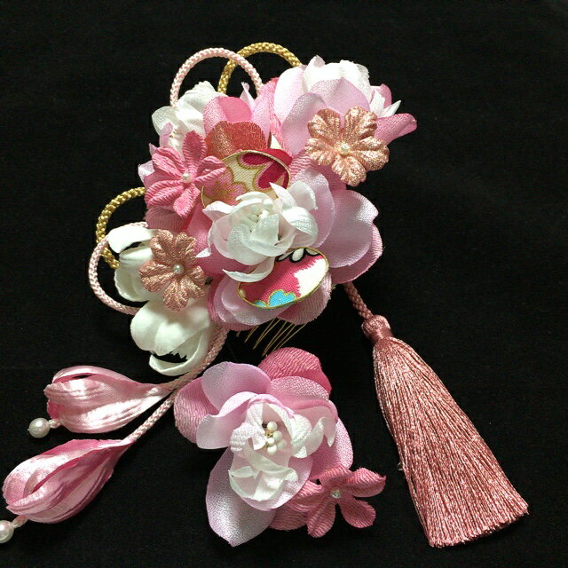 【3点セット】 髪飾り 成人式 振袖 和装 晴れ着 卒業式 袴 つまみ細工 ゴールド 組紐 ≪ 古典 桃 タッセル ちりめん 花 3点 セット ピンク 和柄 ≫ 紐 赤 白 紫 ワイン 黒 金 手作り ハンドメイド レトロ モダン 大正ロマン 安い 激安 派手 人気 ショートヘア パール