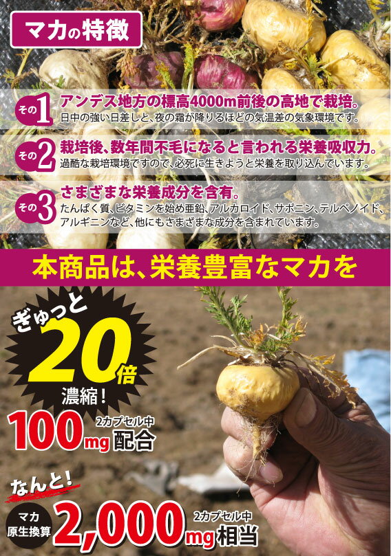 商品情報■ 特徴 国産 栄養補助食品 毎日の元気応援! 黒マカエキス配合 用法・用量/使用方法 <1日当たりの摂取量の目安> 2カプセル メーカーコメント <2カプセル中> 有機マカ粉末 400mg マカエキス末 100mg (マカ原生換算 2000mg相当) 黒マカエキス末 20mg 栄養豊富なマカをぎゅっと20倍濃縮! パワーの源として珍重されている南米ペルー産のマカ。全体の収穫量の10%程度しかない希少種「黒マカ」も配合し、さらにパワーアップ!! 【広告文責】 会社名:株式会社ウィーズ TEL:048-501-7440 区分:健康食品 メーカー:ミナミヘルシーフーズ株式会社