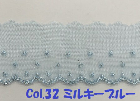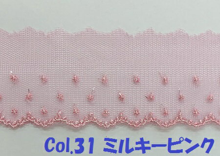 【残り4色】[日本製]ラメチュールカラーレース 水玉 45mm巾 No.KY874008PC 国産 ドット 手芸 チュールレース ハンドメイド