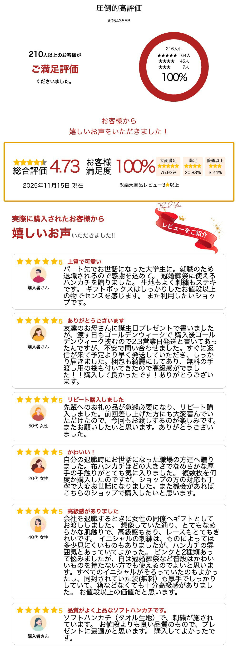 約27×27cm 綿100% レース:ポリエステル100% ベトナム製 ◆ちょっとしたお礼に お世話になった先生・仕事で助けてくれた先輩など送別の返礼品としておすすめ◎ 相手に気を遣わせす、上質感のあるギフトとしてご利用いただけます。 イニシャルは、A、C、E、F、H、I、J、K、M、N、R、S、T、Yの14文字です。 ※有料のギフトBOXをご利用の場合はこちらよりご注文ください。 ※複数枚ご注文の方はお箱入れする商品をご指定ください。 「ありがとう」「ごめんなさい」「おめでとう」 普段は照れくさくて言えない気持ちを伝えたいとき、 1枚のハンカチーフに想いをこめて、大切な方にプレゼントしてみませんか? 毎日持ち歩くハンカチは何枚あっても嬉しいもの。 軽くて実用的なハンカチは相手に気をつかわせないので、ギフトとして最適なアイテムです。 また、ちょっとした機会のプチギフトや、こころばかりのお返しにもご利用いただけます。 こんなシーンに ■ お祝いごと 成人 成人式 成人祝い 入園 入学 入園祝い 入学祝い 卒園 卒業 卒園祝い 卒業祝い 謝恩会 就職 退職 就職祝い 退職祝い 昇格 昇進 昇格祝い 昇進祝い 転勤 異動 異動のご挨拶 結婚 結婚祝い 結婚式 出産 出産祝い 快気祝い 誕生日 誕生日プレゼント バースデー バースデイ お返し 遅れてごめんね ■ 季節の贈り物 お年賀 成人の日 新年会 バレンタイン バレンタインデー ひな祭り 桃の節句 ホワイトデー 引っ越し 引越 引越し こどもの日 母の日 父の日 お中元 御中元 夏まつり 夏祭り お盆 暑中見舞い 残暑見舞い 寒中見舞い 敬老の日 七五三 体育の日 ハロウィーン クリスマス クリスマスプレゼント 忘年会 子供会 こども会 ■ 贈る相手 彼女 妻 母 母親 お母さん 女性 レディース 彼氏 旦那 夫 父 父親 お父さん 男性 メンズ 祖母 祖父 お祖母ちゃん お爺ちゃん おばあちゃん おじいちゃん 叔母 叔父 子供 子ども こども キッズ 女友達 男友達 上司 同僚 お世話になった方 関連商品スヌーピー イニシャル タオルハンカチ 0037 ステッチ入り PEA...マリークワント タオルハンカチ 1201 ベージュ | MARY QU...マリークワント タオルハンカチ 1201 ブラック | MARY QU...660円660円660円マリークワント タオルハンカチ カラフル デイジー アイボリー │ ...スヌーピー タオルハンカチ ジョー・クール柄 アイボリー │ PEA...アクアスキュータム タオルハンカチ コーギー刺繍 ネイビー │ Aqu...660円660円660円スヌーピー タオルハンカチ 野球 ネイビー │ PEANUTS ピー...グレート・ブリティッシュ・テディベア イニシャル タオルハンカチ │ ...ウェッジウッド タオルハンカチ ワンポイント刺繍 ワイルドストロベリー...660円660円660円