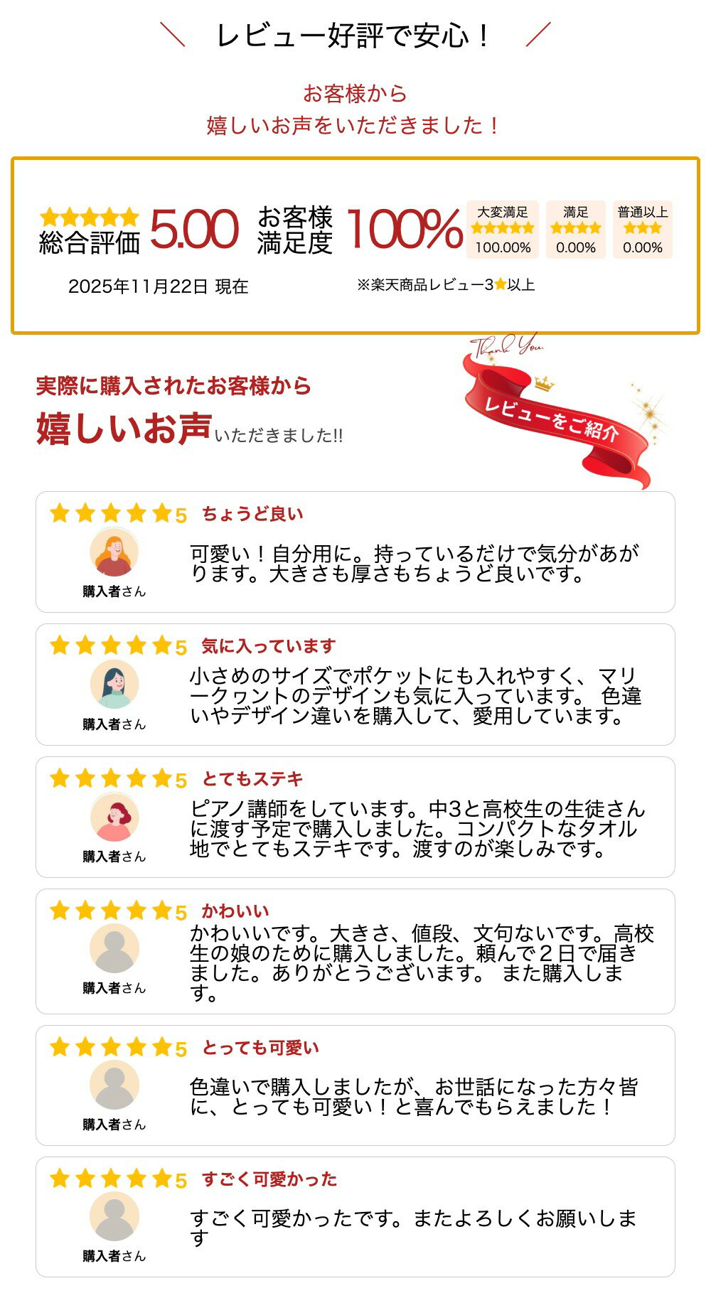 約20×20cm(ミニサイズ) 本体:綿100% アップリケ生地:ポリエステル100% 抗菌防臭加工 中国製 シンプルな色使いで使う人や贈る人を選ばないデザインです。 さり気なく浮かび上がるデイジーマークがアクセントになる、エレガントな一枚です。 小さなカバンの時や二枚持ちに便利なミニサイズ。お子様にもオススメです。 ※有料のギフトBOXをご利用の場合はこちらよりご注文ください。 ※複数枚ご注文の方はお箱入れする商品をご指定ください。 「ありがとう」「ごめんなさい」「おめでとう」 普段は照れくさくて言えない気持ちを伝えたいとき、 1枚のハンカチーフに想いをこめて、大切な方にプレゼントしてみませんか? 毎日持ち歩くハンカチは何枚あっても嬉しいもの。 軽くて実用的なハンカチは相手に気をつかわせないので、ギフトとして最適なアイテムです。 また、ちょっとした機会のプチギフトや、こころばかりのお返しにもご利用いただけます。 こんなシーンに ■ お祝いごと 成人 成人式 成人祝い 入園 入学 入園祝い 入学祝い 卒園 卒業 卒園祝い 卒業祝い 謝恩会 就職 退職 就職祝い 退職祝い 昇格 昇進 昇格祝い 昇進祝い 転勤 異動 異動のご挨拶 結婚 結婚祝い 結婚式 出産 出産祝い 快気祝い 誕生日 誕生日プレゼント バースデー バースデイ お返し 遅れてごめんね ■ 季節の贈り物 お年賀 成人の日 新年会 バレンタイン バレンタインデー ひな祭り 桃の節句 ホワイトデー 引っ越し 引越 引越し こどもの日 母の日 父の日 お中元 御中元 夏まつり 夏祭り お盆 暑中見舞い 残暑見舞い 寒中見舞い 敬老の日 七五三 体育の日 ハロウィーン クリスマス クリスマスプレゼント 忘年会 子供会 こども会 ■ 贈る相手 彼女 妻 母 母親 お母さん 女性 レディース 彼氏 旦那 夫 父 父親 お父さん 男性 メンズ 祖母 祖父 お祖母ちゃん お爺ちゃん おばあちゃん おじいちゃん 叔母 叔父 子供 子ども こども キッズ 女友達 男友達 上司 同僚 お世話になった方 関連商品マリークワント ミニタオルハンカチ 0005 アイボリー MARY ...マリークワント ミニ タオルハンカチ(約20cm) 0011 ブラッ...マリークワント ミニタオルハンカチ 0005 ベージュ MARY QU...550円550円550円マリークワント ミニ タオルハンカチ コスメ ジャガード ブラック ...マリークワント ミニ タオルハンカチ コスメ ジャガード アイボリー...マリークワント ミニ タオルハンカチ(約20cm) 0011 グレー...550円550円550円マリークワント タオルハンカチ 格子柄 0007 ブラック │ MA...マリークワント ミニ タオルハンカチ コスメ ジャガード ベージュ ...マリークワント タオルハンカチ カラフル デイジー アイボリー │ ...880円550円660円マリークワント タオルハンカチ 1201 ブラック | MARY QU...アーノルドパーマー タオルハンカチ シェパードチェック ピンク │ ...ポチャッコ タオルハンカチ 0050 ブルー【POCHACCO】 │キ...660円550円550円