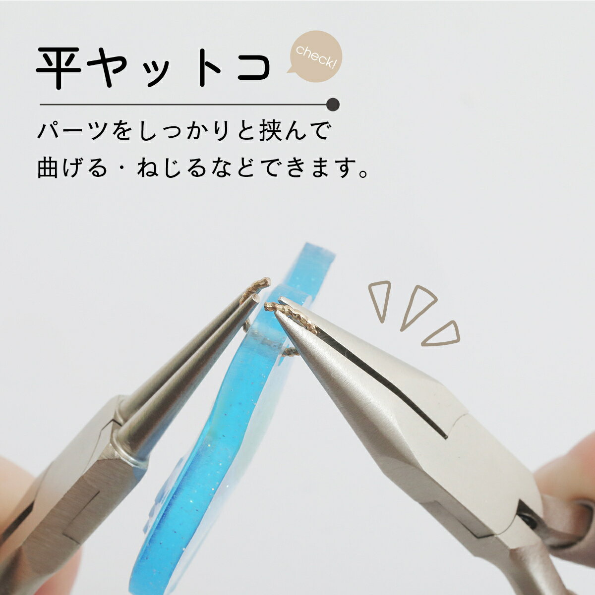 丸ヤットコ、平ヤットコ、ニッパー、3点セットとそれぞれの単品販売がございます。 アクセサリー制作やビーズ、レジンなど細かな作業にご使用いただけます。 淡い色味のグリップが可愛いので作業の気分もいつも以上に上がりそうです♪ 【商品仕様】 ニッパー:約11cm 丸ヤットコ : 約13cm 平ヤットコ: 約13cm 素材:カーボンスチール 入数:セット 3 本 単品 1本 【ご注意】 ・ニッパーの噛み合わせが若干悪い場合がございます。 ・平ヤットコは先端の長さが揃わないものもございます。 ・錆止めのオイルが付着しています。仕入れ時から多少のスレ、傷、汚れがございます。 ・グリップの色味に多少の違いのある場合がございますが、製品に問題ございません。