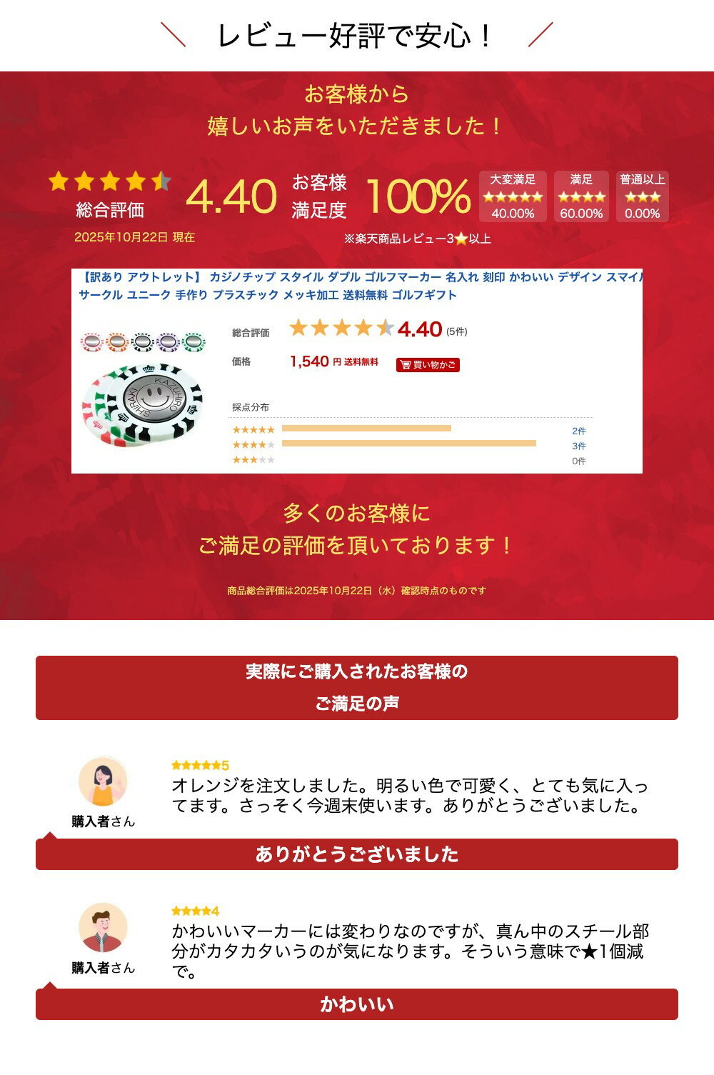 【訳あり アウトレット】 カジノチップ スタイル ダブル ゴルフマーカー 名入れ 刻印 かわいい デザイン スマイル サークル ユニーク 手作り プラスチック メッキ加工 送料無料 ゴルフギフト
