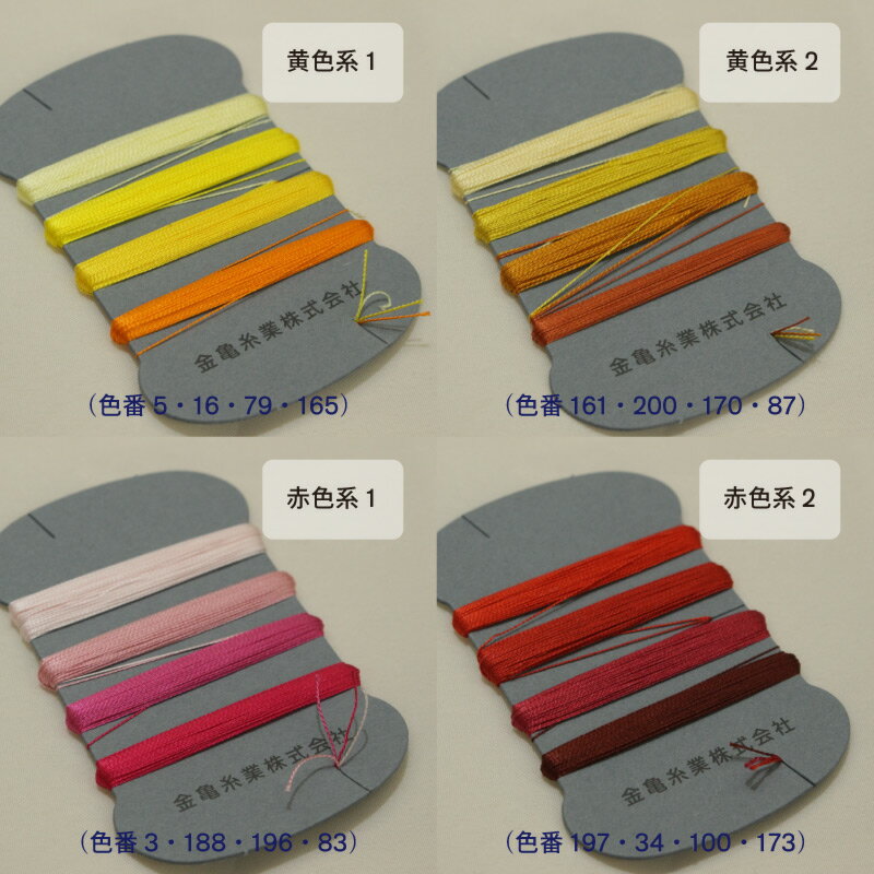【本日ポイント5倍】金亀 絹糸 9号 手縫い糸 10m×4色セット カード巻 金亀印 KINKAME 日本製 絹100% カラー糸 カラー縫い糸 40m アソートセット 糸巻き台紙