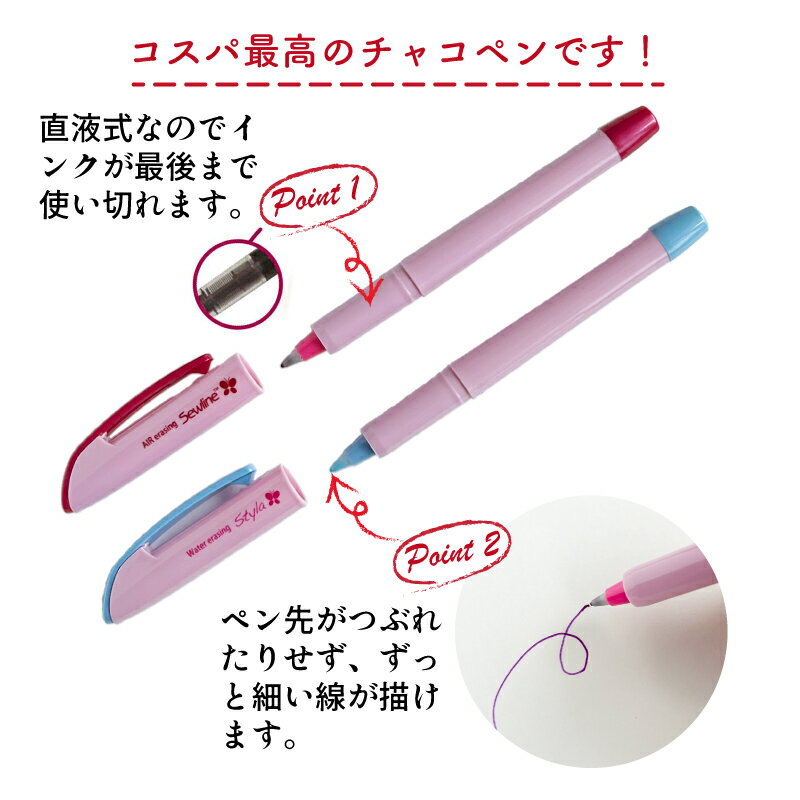 ソーライン チャコペン 水で消える 自然に消える 布用 ボールペン 0.8mm しるしつけペン Sewline 印つけ チャコマーカー 直液タイプ