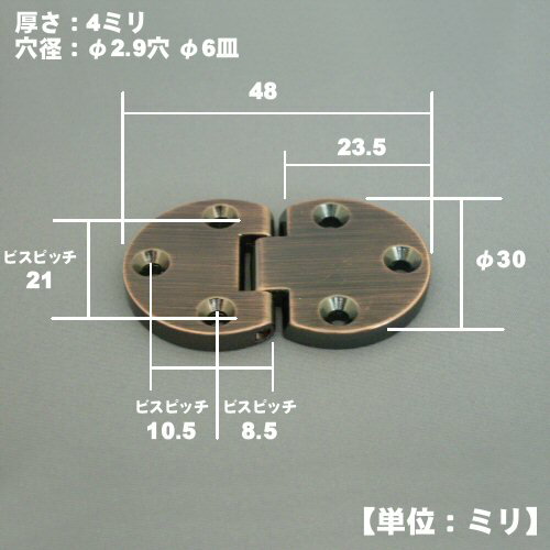 アトム ドロップ蝶番 GB 径30ミリ×全長48ミリ