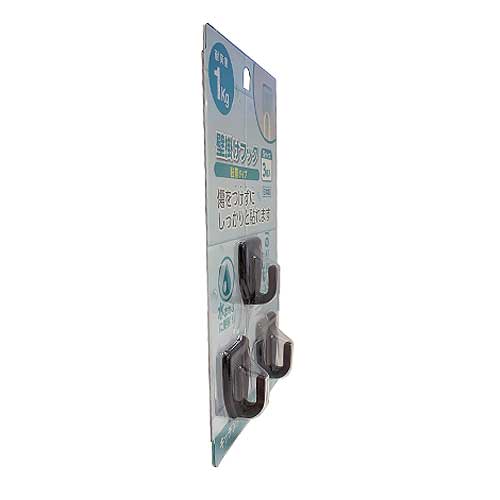 壁掛けフック 粘着タイプS 耐荷重1kg ブラウン 3個入り