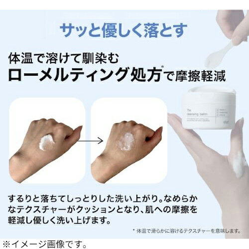 詳細説明【特長】・しっかり落として洗い上がりしっとりツルン。いいとこどりのバーム状クレンジングです。・体温でなめらかにとろけるテクスチャーが摩擦を抑え、メイク汚れや古い角質を素早くキレイに落とします。・肌なじみのよい6つの植物由来保湿成分(※1)配合。・CICA(※2)、レチノール(※3)、ビタミンC誘導体(※4)、パパイン(※5)による美容液成分配合。・洗顔後の肌を整えながら、年齢を重ねた肌をみずみずしくやわらかに保ちます。(※1)ハトムギ種子エキス、アーチチョーク葉エキス、ゲットウ葉エキス、チャ葉エキス、サボンソウ葉エキス、コメ発酵液(※2)シカ(ツボクサエキス/保湿成分)(※3)保湿成分(※4)アスコルビン酸Na、パルミチン酸アスコルビルリン酸3Na、3-グリセリルアスコルビン酸(製品の抗酸化成分)(※5)洗浄成分 【使用方法】・適量を手に取り、マッサージするようにメイクとよくなじませます。・メイクが浮き上がってきたら、水またはぬるま湯で充分に洗い流してください。広告文責:株式会社ハンズ 0120-992-344区分:化粧品販売元:クーインターナショナル株式会社 商品仕様(スペック)香り:ホワイトリリーの香り本体サイズ(約):幅70×奥70×高48mmパッケージサイズ(約):幅72×奥72×高52mm内容量(約):80g付属品:スパチュラ原産国:日本注意事項・直射日光のあたる場所、極端に高温または低温の場所での保管は避けてください。・傷やはれもの、しっしん等、異常のある部位には使用しないでください。・お肌に異常が生じていないかよく注意して使用してください。・化粧品がお肌に合わない時、使用中赤み、はれ、かゆみ、刺激、色抜けや黒ずみ等の異常が現れた時、使用したお肌に、直射日光があたって上記のような異常が現れた場合は使用を中止してください。なお、異常が現れた時は、皮膚科専門医等へご相談をおすすめします。・乳幼児の手に届かないところに保管してください。・目に入らないようにご注意してください。目に入った時はこすらずにすぐに洗い流してください。すすいでも目に異物感が残る場合には、眼科医等にご相談ください。・色や香りに変化が生じる可能性がありますが、内容成分に問題はありません。・衣類についた場合は、すぐに洗剤で丁寧に洗ってください。 ツルンとうるおい美肌に導くマイルドクレンジングバーム