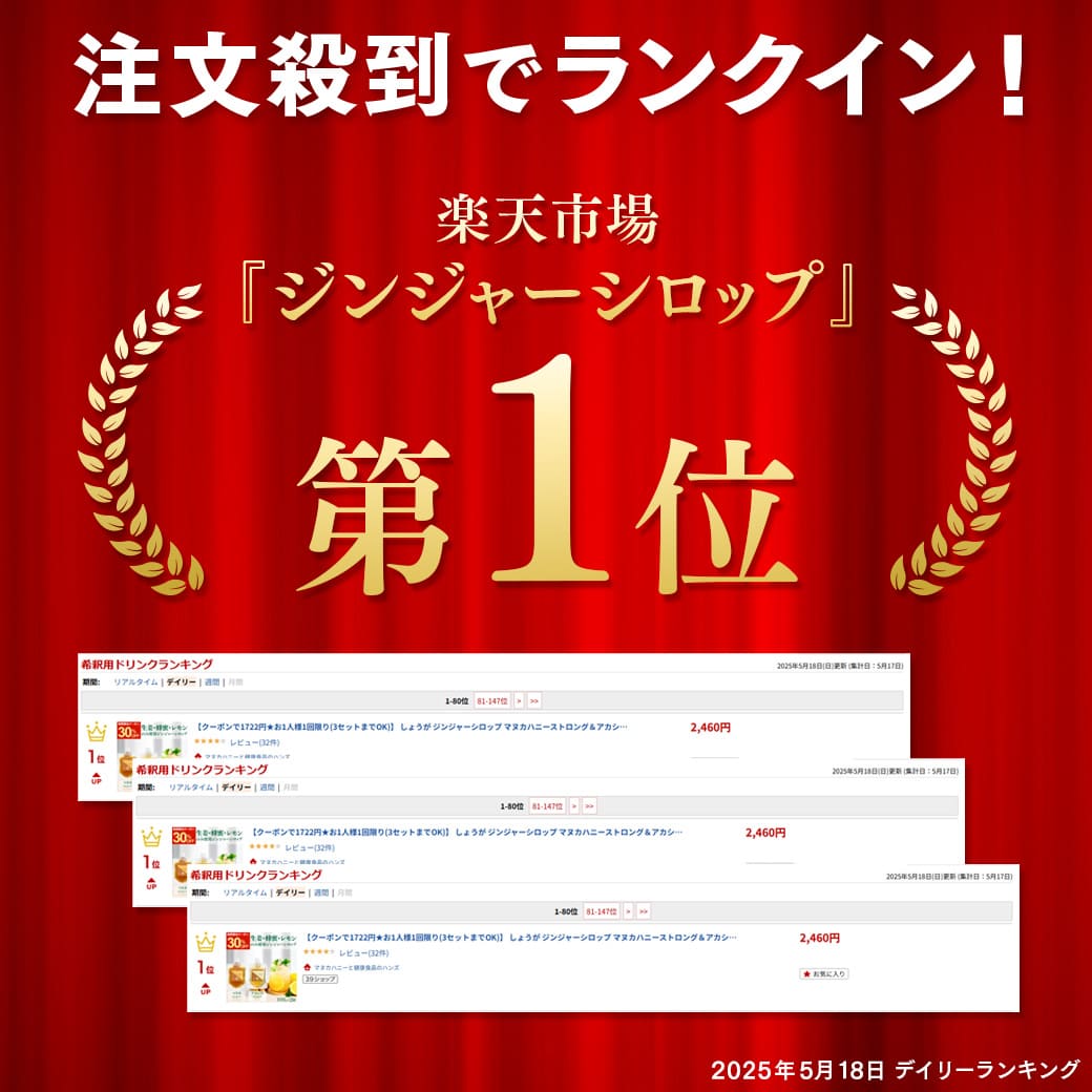 【今だけ!!半額SALE(3個までOK)★12/11まで】【楽天ランキング1位獲得】 しょうが ジンジャーシロップ マヌカハニーストロング&アカシアハニーマイルド 各100g×2個 お試し ジンジャーエールの素 原液 生姜シロップ 辛口 ジンジャーハニー 生姜蜂蜜 生姜湯 温活