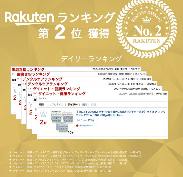 【12/1 24時間限定★P3倍+最大1,500円OFFクーポン】ライオン ブリリアントモア W 10本 (90g/本) Brilliant more W ホワイトニング ステイン除去 歯みがき粉 歯科専売品