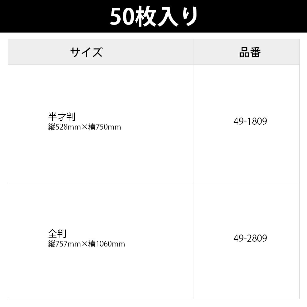 【入り数】50枚袋入 【サイズ】 半才判:縦528mm×横750mm 全判:縦757mm×横1060mm 【材質】上質紙(64g/m2) 包装紙 偲び草 仏事用柄とは 包装紙 偲び草 仏事用柄 50枚入 半才判は、上品な和柄が印象的な仏事用包装紙です。光沢やツヤがない上質紙は、コシがあり破れにくいのが特徴的です。この包装紙は、繊細な植物の総柄デザインが施されており、その上品なグリーンの色合いがどんなギフトにも洗練された印象を与えます。特に仏事や香典返しに適しており、その落ち着いたデザインは故人を偲ぶ心温まる気持ちを表現するのにふさわしいです。また、誕生日やその他のお祝い事にも使用できる汎用性を持ち合わせています。この包装紙は、贈る人の心遣いを形にし、受け取る人に感動を与えることでしょう。プレゼントを包む際の必需品として、または贈答用雑貨としても最適です。美しい包装で、大切な人への思いを伝えましょう。サイズは縦528mm×横750mmの扱いやすい半才判サイズと、縦757mm×横1060mmの大きなギフトを包装するのに最適な全判サイズの2サイズからお選びいただけます。こちらの商品は50枚入りなので、店舗でのラッピングサービスやイベントでの大量使用におすすめです。 種類品番 半才判49-1809 全判49-2809 半才判:縦528mm×横750mm 全判:縦757mm×横1060mm包装紙の種類 包装紙には上質紙・コート紙・純白ロール紙・クラフト紙・クレープ紙・不織布など、表面がツルツルのものや裏に筋の入ったものなど種類は様々あります。紙質によっては折り目やテープが付きにくい包装紙もあるので、事前に知っておくとラッピングがスムーズにできます。包装紙の紙質を把握して、自分好みのラッピングをしましょう。こちらの包装紙は両面とも光沢やツヤがない、ポピュラーな上質紙です。コシがあり破れにくく、コピー用紙などでおなじみの紙質で、普段から触れる機会が多い紙なのでなじみ深い紙とも言えます。幅広く使用される包装紙で、仏事用として葬儀・法事の際のお供えや香典返しなどの場で活躍します。 枚数サイズ大きさ品番 50枚入り半才判縦528mm×横750mm49-1809 50枚入り全判縦757mm×横1060mm49-2809 包装紙の選び方 用途にあったデザインを選ぶ包装紙は包む物やプレゼント内容、葬儀や法事などのイベントによって選ぶデザインが変わります。こちらの包装紙は上品な仏事用の包装紙です。淡く暖かみのある草模様で上品で落ち着いたデザインを、暖かみのある上質紙に印刷しました。お悔やみごとや香典返しの包装にお使いいただけます。また、無地のラッピングペーパーと合わせたラッピングも楽しめます。静謐さと自然の美しさが調和したデザインで、男女問わず幅広い年齢層に受け入れられ、気持ちを伝えるギフトにご利用いただけます。広がる野原の風景を思わせる柔らかなデザインが、全体に穏やかで落ち着いた雰囲気をもたらします。繊細に描かれた和の模様が、自然の中での静けさと安らぎを感じさせ、贈り物に深い意味と品位を添えます。優雅でありながらも控えめなデザインが、贈り物に心からの敬意と温かみを加え、大切な瞬間にふさわしい印象を与えます。用途にあったサイズを選ぶ包みたいギフトの形やサイズによって選ぶ包装紙の大きさも異なります。また、キャラメル包みや斜め包みなどの包み方の違いでも必要な包装紙のサイズは変わります。まずは箱の大きさを確認し、必要な包装紙の目安を算出してください。また、化粧折りを行う場合は化粧折り分も合わせて算出します。化粧折りとは、はじめに包装紙の片端を1回折る事で仕上がりを綺麗に見せる方法です。紙の断面が処理されているので、開封時に指を切る危険性も減ります。化粧折りをしなくてもラッピングはできますが、ちょっとした心遣いとして覚えておくと良いでしょう。包む際、慶事(お祝い)か、弔事(お悔やみ)かで包み方が異なるため注意が必要です。弔事の際は左の紙が上になるように包装紙を重ねます。弔事の際のみ、風呂敷やふくさの時と同様でお祝い事と逆の包み方をするため、包み方を間違えないよう注意しましょう。 包装紙を使用するシーン 弔事用として仏事・法事・葬儀などに用います。例えば、葬儀の供物や会葬御礼、忌日(初七日・五七日・七七日)の法要や、香典のお返しなどに最適です。 包装紙の保管方法 包装紙は三つ折りにして袋に入れてお届けいたします。袋入りなので、保管にも便利です。保管の際は、高温多湿と直射日光を避けてください。また、平らな場所に置くことで、シワになることを防げます。手触りの良い包装紙を良好な状態で保管することで、長期間お楽しみいただけます。