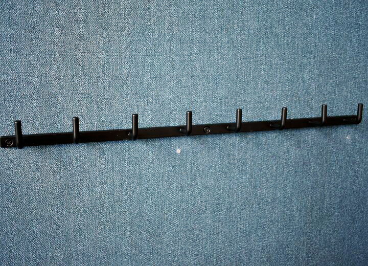 BLACK L×8 Fook Bar. マットなブラックが空間を引き締めるアイアンウォールフック L字フックが連なったデザインのウォールフック。空間を引き締めるブラックアイアンが洗練された雰囲気を生み出します。 無機質の中にある柔らかさ 無駄のないシンプルなデザイン、吊り下げるもので変わる表情。スマートに日常使いができるような仕様になっています。 どこにでもしっくり溶け込む 玄関先で帽子やサコッシュを掛けたり、こども部屋に設置して習い事バッグを掛けたりと様々な場所でお使いいただけます。 サイズ (幅)44.5cm×3cm×3.5cm 耐荷重:5.0kg 組成 アイアン ※付属ネジ付き 商品説明 ■マットなブラックアイアンにL字フックが連なったデザインのアイアン製のウォールフック。 ■設置場所によって様々な使い方ができ、空間をお洒落に魅せてくれるアイテムです。 ■8個のL字フックを利用して掛けたり吊り下げることでさらに機能的にお使いいただけます。 サイズ展開 ・ [3連ウォールフック 16.5cmタイプ] ・ [5連ウォールフック 幅28cmタイプ] ・ [8連ウォールフック 幅44.5cmタイプ]