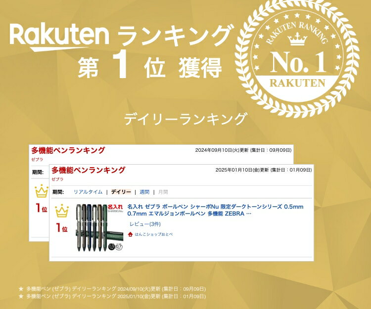 関連商品名入れ ボールペン シャーボNu ゼブラ 0.7mmボールペン+0.5...名入れ ボールペン シャーボNu ゼブラ 0.5mmボールペン+0.5...名入れ ゼブラ シャーボNu リラックスカラーシリーズ 限定品 限定カ...名入れ ボールペン ジェットストリーム [カリモク家具 コラボ] 4&...名入れ ボールペン ジェットストリームプライム 2&1 2色ボールペン...2,480円2,480円2,750円2,990円2,990円名入れ ジェットストリーム プライム ライトタッチインク搭載 3色ボー...名入れ 多機能ペン ゼブラ シャーボX TS10 プレミアム リフィル...ゼブラ シャーボX LT3 [本体のみ] 多機能ボールペン SB22 ...名入れ ネームペン スタンペン4Fキャップレス 谷川商事 ボールペン ...名入れ ボールペン エボルト 2+1 パイロット BTHE-1SR 0...2,745円12,800円2,990円2,880円1,650円名入れ ゼブラ ボールペン シャーボNu 限定ダークトーンシリーズ 0.5mm 0.7mm 特徴 使いやすさを追求した回転式多機能ペン、シャーボNu(ニュー)にレーザー彫刻でお名入れいたします。 金属ボディを採用し、カッチリとした、気持ちのよい操作感を実現した、高級クラスに迫る質感の多機能ペンです。 軽く滑らかで濃い筆記性能のエマルジョンボールペンを採用しています。 メーカー ゼブラ 名入れに ついて レーザー彫刻により本体に名入れ致します。(最大彫刻範囲は4.4×31ミリ) 最長文字数は日本語が8文字、英字のみの場合が16文字 (文字数にはドット、スペースを含みます。) 名入れの 文字色 文字の色は変更できません。 ※文字色はレーザー彫刻であらわれる、ペンの素材の色です。 各色彫刻見本写真をご用意しておりますので、彫刻色見本をご参照ください。 (本体素材がステンレスのため、シルバー調の色合いとなります。) 無料 ギフト 対応 ご希望の場合、下記を添付させていただきます。 1、シャーボNu専用ギフトケース (メール便発送でも折れ曲がらないよう、折りたたんだ状態です。) 2、無料ラッピング袋、シールを添付いたします。 (ご自身で包装していただける、透明のラッピング袋です。) ペンの 仕様 サイズ/25.5g・最大φ12.8mm・全長 141.8mm 本体素材/上軸:ステンレス・塗装仕上げ/下軸:真鍮・塗装仕上げ ●ボール径種類/0.5mm、0.7mm ●シャープ芯/0.5mm ●本体カラー/ [0.5mm]ステンレスブラック、ダークブラウン、ダークビリジアン [0.7mm]ステンレスアッシュ、ダークボルドー、ダークインディゴ ●替芯/ESB-0.5/0.7芯 シャープペン/0.5mm 配送及び 出荷まで の目安 3〜4営業日(土日祝を除き3〜5日)以内に発送いたします。 送料無料(メール便)です。