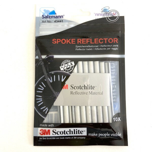 ご家族みなさんで 交通安全の習慣を取り入れましょう。 スポークに装着すると、 日中は目立たないシルバーですが、 暗くなってからヘッドライトの反射を受けると 驚くほど目立ちます。 自転車のデザインを損なわないので オシャレにこだわりのある方にもオススメです。 10本セットでこの価格はお値打ち! ※自転車と同じ形状の車いすにも使えます StVZO(ドイツ道路交通取締法)に準拠しています。 STVZO (K-925) zugelassen, wenn folgendes beachtet wird: - mind. 36 Speichenreflektoren pro Laufrad - Aufdruck des Prufzeichens (K-925) auf mind. einem Speichenreflektor pro Laufrad - Langsschlitze zeigen in oder gegen die Fahrrichtung , nicht zur Seite gleichmaBiger Abstand der Reflektoren zur Felge Germany ■日本語訳■ STVZO(K-925)は、以下が遵守された場合に承認されます。 -ホイールあたり少なくとも36のスポークリフレクター -ホイールごとに少なくとも1つのスポークリフレクターにテストマーク(K-925)を印刷します -縦方向のスロットは、横ではなく、進行方向を向いています リフレクターとリムの間の距離も均一 StVZO(ドイツ道路交通取締法) (マイクロスコープ撮影画像) プラスチック樹脂に反射素材が貼られています。 円柱型のため、スポークを包み込むように360度どちらからでも反射します。 3Mスコッチライトの再帰性反射材は、無数のマイクロビーズが 乱反射することなく真っ直ぐに運転手の目に光を反射して 歩行者の存在をアピールしてくれます。 自転車のスポークにパッチっとはめ込むだけのリフレクターです。 ※タイヤの形や動きが鮮明にわかり、ドライバーなどからサイクリストを確認できる視認性が高まり安全に走行する手助けをしてくれます。 【サイズ】 直径5mm×長さ75mm 10本入 ※2023.5月 1mm細く&5mm長く仕様変更 【素 材】 3Mスコッチライト製マイクロプリズム再帰性反射材 (StVZO(ドイツ道路交通取締法 認定品) ※なんと通常のカプセルレンズタイプの約3倍の 輝度があります。 【備 考】 ●斜め前、斜め後から、360度からの光を受け反射します。 ●シンプルなシルバーカラーのクリップはアルミニウムでコーティングされた 顕微鏡ガラス気泡です。 ●簡単に取り付け可能で強い耐久性で取れにくい仕様です。 ●一般的な自転車のスポークに取り付けて使用出来ます。 (スポークの直径1.8〜2mm) 車いすのスポークにも使えます。 ※スポークの太さにより、装着具合が異なります。 装着具合が不安な方は、サンプルのご用意もございますので ご利用ください。 (サンプルのみのご請求は対応出来かねます。ご了承ください。) ※着脱を繰り返すとゆるくなって取れやすくなります。 付け替えなどせず、着用したままをお勧めします。 ※リフレクティブスポークがホイールの不均等を 引き起こす事はありません。 【取り付け方】 ※スポーク(車輪の中央から放射線上に伸びる線上部分)に 車輪から2〜3cm離れた場所に位置するように取り付けて 下さい。 (注)より外側に固定されていると、タイヤや車体サイズの 視認性が高まりますが、固定されていなくても、 不具合ではございませんので、安心してお使いください。 素材の性質上、0.数ミリの誤差が生じ、緩かったり キツかったりといった個体差がありますことご了承ください。 ※硬い場合には、怪我防止のため、軍手や添木をお使いにください。 ※クリップは片端から取り付けを始めてください。 ※クリップの溝(スポークへの差し入れ口)がサイドからの 視認性を確保する為に進行方向逆へ向くように取り付けて 使用して下さい。 夜間の自転車走行 自転車事故 夜間の安全 夜道も安心 自転車通勤 昼間は目立たず、夜に目立つ 危険回避 クロスバイク ミニベロ 事故防止 ※OEM終了のため、製造元のドイツsalzmann社のパッケージに変更となりました。 従来のハナデザインブランドの自転車スポーク用反射材と同商品となります。
