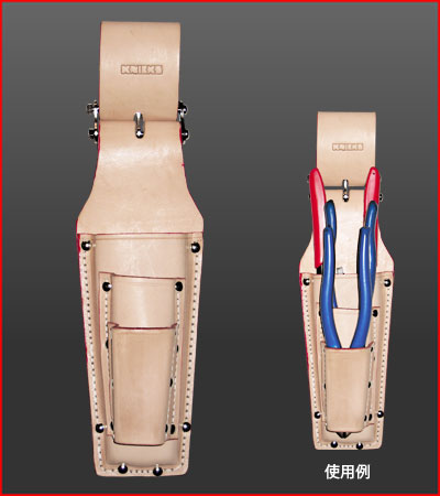商品詳細 ニックス(KNICKS) チェーン式 圧着ペンチ・ポンププライヤー・ペンチニッパホルダー ●台部表皮二重皮縫 ●7・8インチペンチ・ニッパ収納可能 仕様 全長x横幅(mm):360x100 KNICKS製品の特徴 KNICKSで使う革は、天然素材ゆえのシワやキズを一つの個性ととらえ、表面加工を抑えて、自然の表現を生かした仕上げをしています。 そのため、製品の中にもシワやキズがそのままの表情として入ります。 使い込み、時を経るごとに色に深みと艶が増し、キズやシワも使う人ならではの味となり、腰袋/釘袋/ホルダーの一部となっていきます。 首や肩の周りや背中など、革に元々あるシワが寄りやすい部位に筋状の縞模様が入ります。 これを「トラ」と呼んでいますが、製品によっては、大きくトラが入るものもあります。 「トラ」の部分は、亀裂が入っている訳ではありませんので、他の箇所と較べ強度面は劣りません。 通常ですと、表面加工を施して模様を消したりしますが、天然素材 そのままの風合いを大切にしています。 トラの入り方もそれぞれ異なりますので、革本来の個性をお楽しみ下さい。 出来るだけ革本来の表情や経年変化をお楽しみいただくために、色止め等の表面加工を最小限にとどめています。 衣服とのこすれや水ぬれ等により、他の物にも色移りしますのでご注意下さい。 特にうすい色の衣服での使用にはご注意下さい。 色移りは革の表面(銀面)、裏面(床面)ともに起きます。 衣服が濡れている時は特に色移りが起きやすくなります。 ※ご注意 表記寸法について 製造過程縫製上での若干の標記寸法と異なります。 特にナイロン生地の場合生地と生地との間にウレタンをボンディングしている為、製品ごとに若干寸法が異なります。 革製品においても自然素材の為若干寸法が異なる場合があります。 ご了承ください。 カラー・質感について 革製品に関しては自然革の為、色・張りが異なる場合があります。 また、画面の色と実際の製品の色は異なる場合がございます。 ご了承ください。 商品画像について 写真はカタログ写真を使用しています。 メーカーの仕様変更や撮影時の照明などにより、色合い・風合いなどが実際とは多少異なる場合がありますが、返品はお受け致しておりませんので予めご了承くださいませ。