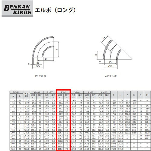 【特長】 ●汎用的に使用される黒管タイプの継手 【用途】 ●石油化学関係 ●一般ビル建築配管 【仕様】 JIS B2311規格品 肉厚:3.5mm 呼び径A:32 呼び径B:1 1/4 外径(mm):42.7 肉厚t(mm):3.5 形状:90°ロングエルボ F(mm):47.6 材質:配管用炭素鋼(SGP) 質量:0.252kg