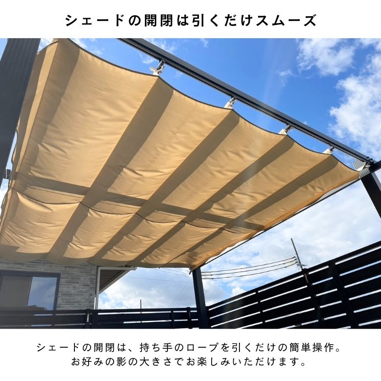 シェード 日よけ パーゴラ ベージュ ロープ開閉式 テラス ガゼボ ガーデン サンシェード 日除け オーニング グランピング BBQ 休憩所 ビーチ シェード付パーゴラ【大型宅配便】