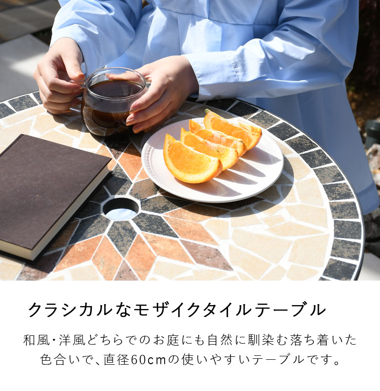 ガーデンテーブル テーブル モザイク天板 φ60 タイル天板 アイアン イングリッシュガーデン ホテル カフェ ベランダ テラス バルコニー 屋外家具 モザイクタイルテーブル 単品 直径60cm 【大型宅配便】