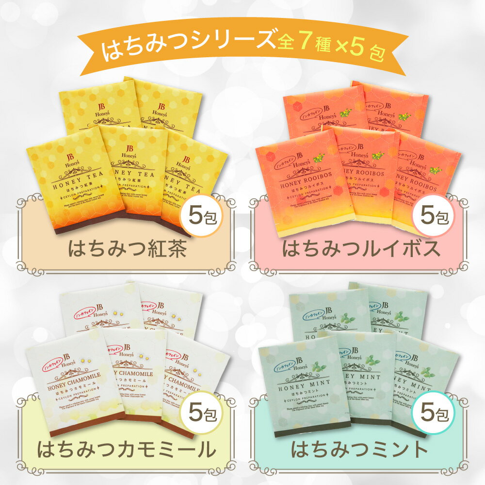 はちみつ紅茶 ハチミツティー 全フレーバーお試しセット 7フレーバー各5包 合計35包1セット はちみつ紅茶 JB Honey`s ハニー 蜂蜜 紅茶 ティーバッグ セイロンファミリー スリランカ リラックス カフェ 蜂蜜紅茶 ノンカフェイン おすすめ メール便 送料無料