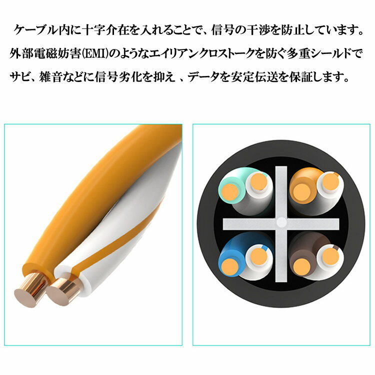 【検索用キーワード】 1m LAN 延長ケーブル RJ45 CAT6 LAN延長コネクタ 高速イーサネット Gigabit 有線 LAN 延長コード 爪折れ防止 速度低下防止 パッチコード FTPシールド付き LAN中継コネクタ対応 1m ランケーブル,RJ45 延長,1m,LAN,延長ケーブル,RJ45,CAT6,LAN延長コネクタ,高速イーサネット,Gigabit,有線,LAN,延長コード,爪折れ防止,速度低下防止,パッチコード,FTPシールド付き,LAN中継コネクタ対応,1m1m LAN 延長ケーブル RJ45 CAT6 LAN延長コネクタ 高速イーサネット Gigabit 有線 LAN 延長コード 爪折れ防止 速度低下防止 パッチコード FTPシールド付き LAN中継コネクタ対応 1m 商品詳細 LANケーブルの長さが足りない時に継ぎ足して使う10ギガビット対応のLAN 延長ケーブルです。 事務所・工場内・家庭内、インターネットや社内ネットワーク等でLANケーブルの延長に、またはノートパソコンのLAN用コンセントに幅広くご使用いただけます。 対応伝送帯域:カテゴリー6対応 ギガビット・イーサネットの高速通信に最適なカテゴリー6 TIA/EIA 568-C.2に対応した、スタンダードなLANケーブルです。 1Gbps、26AWG、最大550 MHzの高い帯域幅をサポート。 1000BASE-TX/1000BASE-T/100BASE-TX/10BASE-T仕様のLANケーブルに対応しています。 各種回線に対応 ADSL回線、ISDN回線に対応しています。 仕様 長さ:約100cm Cat5e RJ45オスーメスシールド、LAN延長ケーブル。 シールド、LAN、HDTV, プレーヤー、XBox 360などに汎用です。 Cat5eネットワークパッチケーブル。 注意事項 ※輸入品につきまして、本体や化粧箱に小さめの傷や汚れが付く場合があります。予めご了承ください。 ※製品改良の為、予告なしにパーツのカラーなど仕様変更がある場合があります。予めご了承ください。 ※製品のサイズは平置き測量の為、多少の誤差がありますのでご了承ください。 ※PC環境や撮影状況などの違いにより実際のお色とは若干異なる場合がございます。 ※商品の使用中に生じたいかなる損害も、当店では責任を負いかねます。利用はお客様ご自身の責任において行ってください。