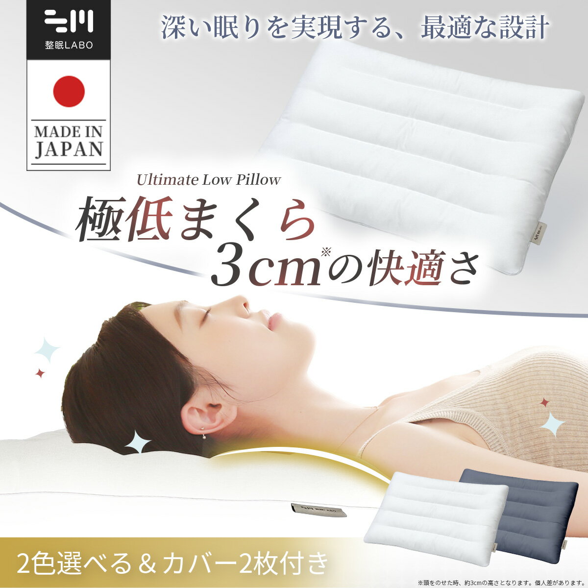 【30%OFFクーポン利用で3486円】枕 低め まくら 国産 低め枕 無料で枕カバー2枚付き 首や肩の負担を減らす 大人 小学生 中学生用 高級抗菌枕す 薄い枕 日本製 高さ調節 丸洗い可能 快眠サポート 軽量枕 洗える 寝返りがしやすい 60x40cm 送料無料