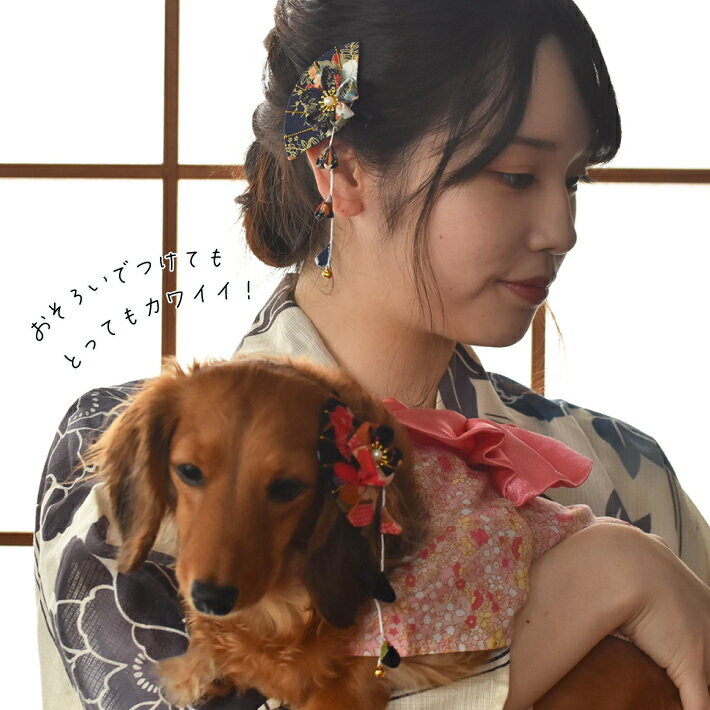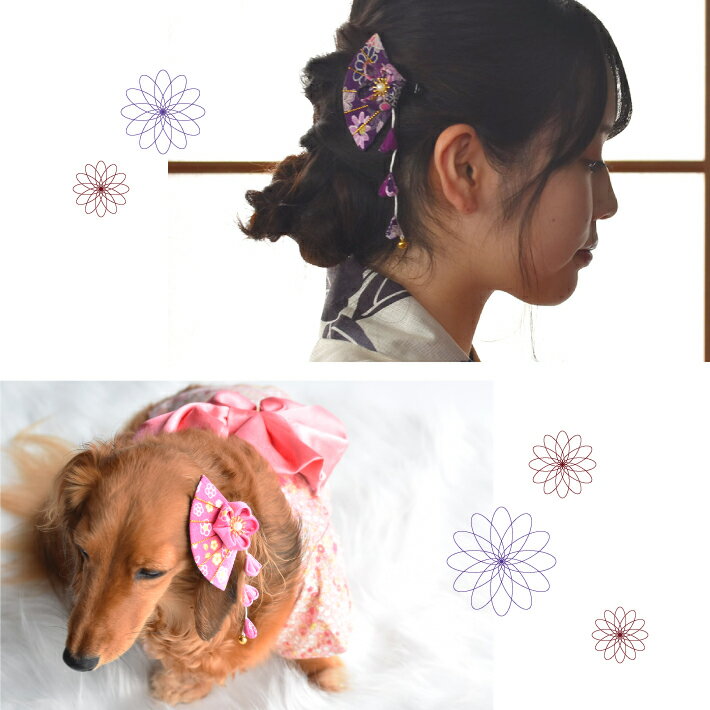 【犬 ヘアアクセサリー】 扇形 つまみ細工 フラワー 和風 ヘアピン