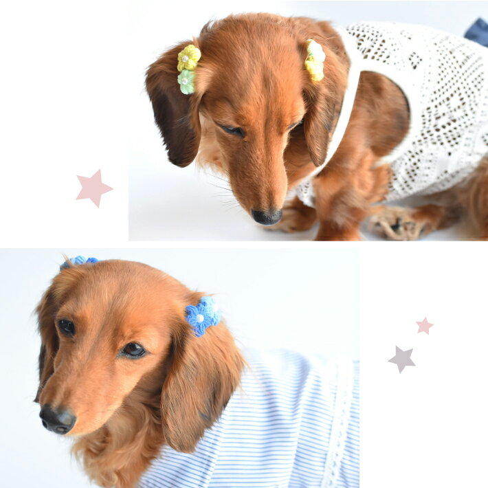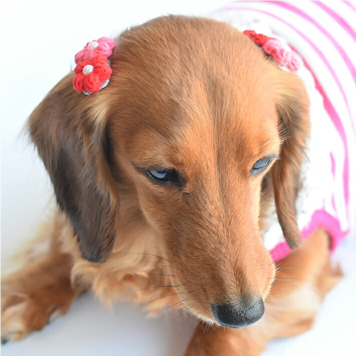 【犬 ヘアアクセサリー】ダブル フラワー お花 パッチンコームピン 2点セット ハンドメイド 髪留め 髪飾り H キッズ ベビー