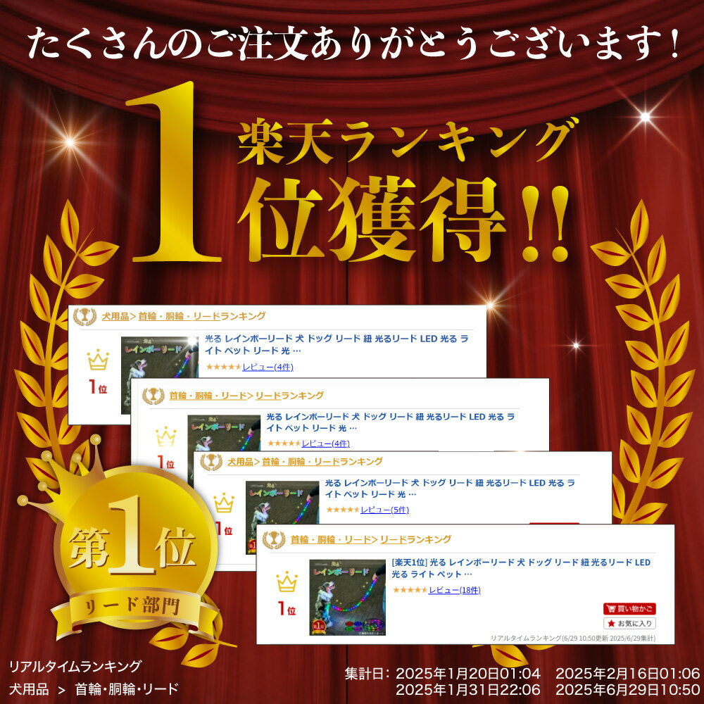 [楽天1位] 光る レインボーリード 犬 ドッグ リード 紐 光るリード LED 光る ライト ペット リード 光 虹色 6色 LED 点灯 点滅 蛍光 USB 充電 充電式 夜間 散歩 安全 防犯 事故防止 小型犬 中型犬 大型犬 おしゃれ かわいい ピカピカ 夜の散歩 夜散歩 イルミネーション