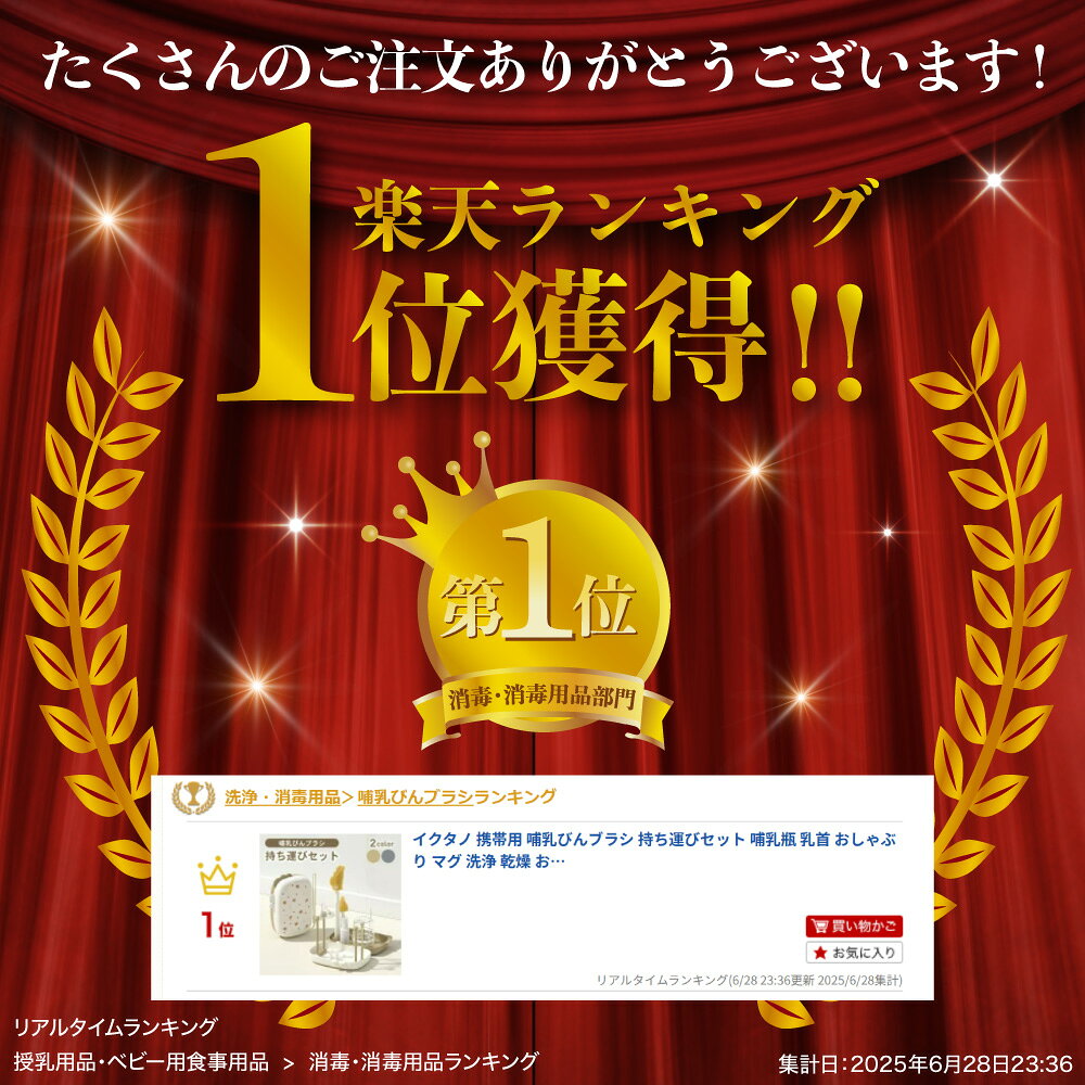 メーカー希望小売価格はメーカーカタログに基づいて掲載しています 商品情報 名称 哺乳びんブラシ持ち運びセット カラー ブラウン、グレー セット内容 ボトル用ブラシ、乳首用ブラシ、ストローブラシ、洗剤詰め替えボトル、水切り乾燥スタンド、収納ケース 材質 ボトル用ブラシ ハンドル:ABS、ブラシヘッド:TPE 乳首用ブラシ ハンドル:ABS、ブラシヘッド:シリコン ストローブラシ ハンドル: ステンレススチール、ブラシ:ナイロン 洗剤詰替ボトル ボトル:PET、ノズル:PP 水切り乾燥スタンド ABS 製造国 中国ikutano 哺乳びんブラシ持ち運びセット 外出先でも「いつでも洗浄」が叶う便利キット 育児中のママ、パパにおすすめの「あったら助かる!」をギュッと一つに詰めました。 スポンジのブラシはかさばるし衛生的に心配。洗った哺乳瓶の置き場ってどうすればいいの? そんなお悩みも解消!いつでもどこでも洗えるように、持ち運びのしやすいコンパクト設計だから、旅行や帰省にも便利なんです。 BPAフリーだから赤ちゃんにも安心! <育児の衛生管理に。これ1つでフルカバー> ・ボトル用ブラシ:泡立ちやすいTPE素材。やさしく、でもしっかり洗える。 ・乳首用ブラシ:乳首にフィットする形状で、ミルクが残りがちな奥のカーブにも対応。 ・ストローブラシ:チューブの内側もきっちり洗浄。ストローマグや水筒にも◎。 ・洗剤詰め替えボトル:30ml入るからいつもの洗剤も持ち運びOK。 ・水切り乾燥スタンド:洗った後の自然乾燥に便利。通気性◎で衛生的。 ・収納ケース:すべてがひとつにまとまり、バッグの中で散らばらない! <こんなシーンで大活躍> ・お出かけ・旅行・帰省・入院時の備えに ・毎日の哺乳瓶&乳首&ストロー洗浄に ・出産祝い・ベビーギフトにも喜ばれます!
