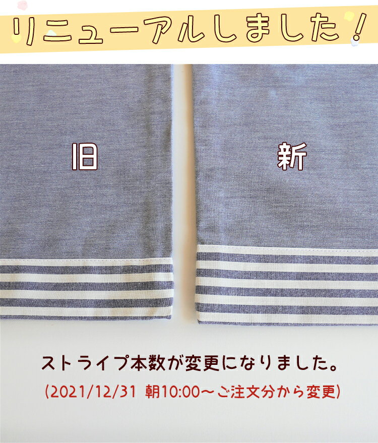 商品説明 素材コットン:55% ポリエステル:45% サイズ 横:35cm × 縦:37cm (持ち手含まず) ※ 持ち手を含めた縦の長さは約44cm程です。 特徴 マチ無し 裏地無し(底面のみ生地二重仕上げ) 注意事項ご覧のモニターよって実際のものと色が異なってみえる場合がございます。サイズ誤差が出る事もございます。生地の生産ロットにより、生地の硬さ(風合い)が異なる事もございます。 ※商品に関するお問い合わせは、お電話にてお気軽にどうぞ!\ 大サイズ巾着袋!/ 内側に綾テープで持ち手をお付けしました。不要な時は中に、必要な時は表に、出し入れして、お使い頂けます。 裏側の写真。 底面は生地を二重にし、丈夫な作りに仕上げました。 軽いのにシッカリ、お洗濯後の乾きも早い生地です。 内側にはお名前タグ付き! オプションでお名前刺繍の対応あり! ☆ 中サイズ ☆ 小学低学年サイズのエプロンや体操服入れにオススメです。 中サイズページはこちらをクリック >>> ☆ 大サイズ ☆ 小学高学年サイズのエプロンや体操服入れにオススメです。 薄手ですが国産のシッカリした生地です。 外の明るい光の下と、室内の蛍光灯の下とでは、色が異なって見えます。 ※下記は、中サイズの写真を使用しています。 ※ ストライプの色の変更は不可です。 【対象の生地カラー】ダークグレー/ブルーレッド/オレンジグリーン/コスモスピンクラズベリー/ネイビー 【対象の生地カラー】ココア/パープル/モスグリーン 【対象の生地カラー】左記に記載の色以外は、グレーのストライプです。 お洗濯後、シワを伸ばして干して頂けるとノーアイロンOKでお使い頂けます。 アイロンが間に合わない時に、そのままで大丈夫なので忙しいママに喜ばれております。 中央寄せ 右寄せ 上記は、文字数少なめ。 文字サイズも小さくならない ♪ 8文字以上になると文字が小さくなりがちに。 上記、6文字はまだOK ♪ 【濃い色の生地】 ダークグレー、パープル、ココア、ブルー、ネイビー 【やや濃い色の生地】 モスグリーン、グリーン、レッド、ラズベリー
