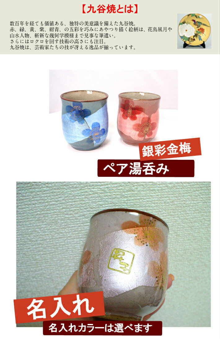 【名入れ可】九谷焼 ペア湯呑み 銀彩金梅(名入れ湯呑み 名入れグラス 名入れカップ オリジナル プレゼント ギフト) おすすめ 敬老の日 孫
