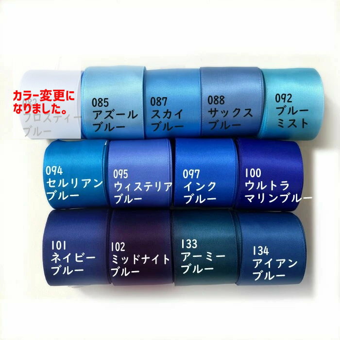 サテンリボン 1m計り売り 両面サテン テープ 6mm幅 ブルー系 無地 全13色