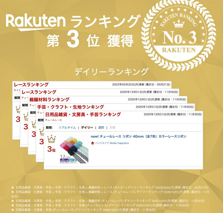 【12/11まで楽天スーパーSALEポイント10倍&クーポン】new! チュールレース リボン 40mm(全7色)カラーレースリボン