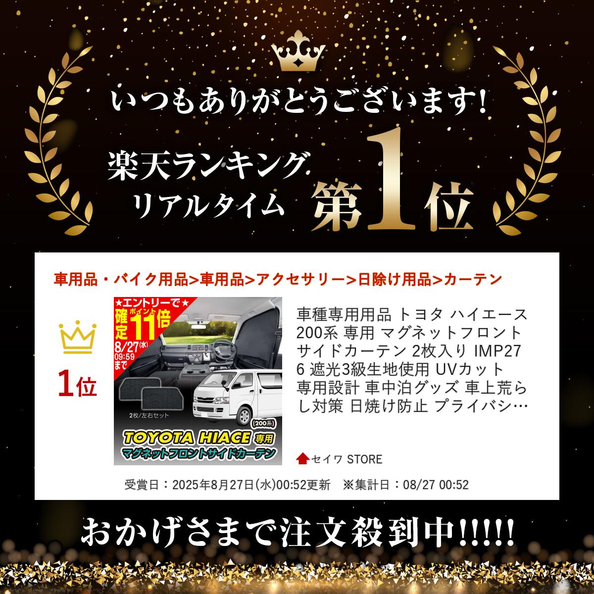 車種専用用品 トヨタ ハイエース 200系 専用 マグネットフロントサイドカーテン 2枚入り IMP276 遮光3級生地使用 UVカット 専用設計 車中泊グッズ 車上荒らし対策 日焼け防止 プライバシー保護 熱中症対策 カー用品 セイワ(SEIWA)